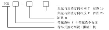 TGN 系列刮泥機如圖1a、2a所示,由行車、刮泥耙、撇渣耙、驅動裝置和控制柜等組成。